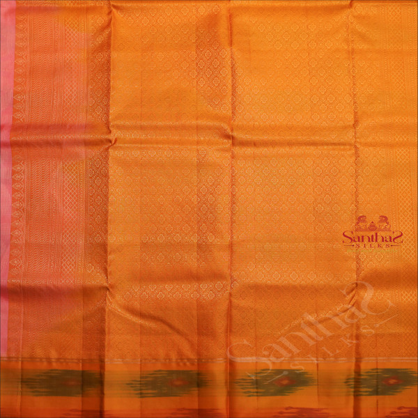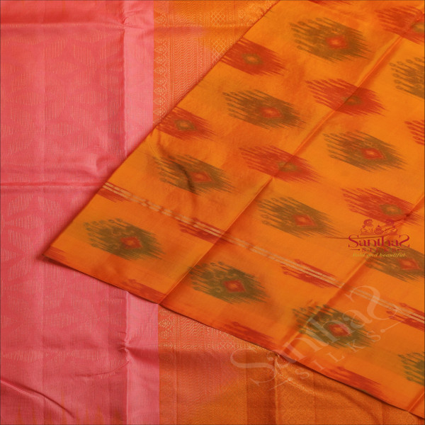 BABY PINK COLOUR BODY WITH GOLDEN ZARI EMBOSED WITH CONTRAST BLOUSE & BORDER