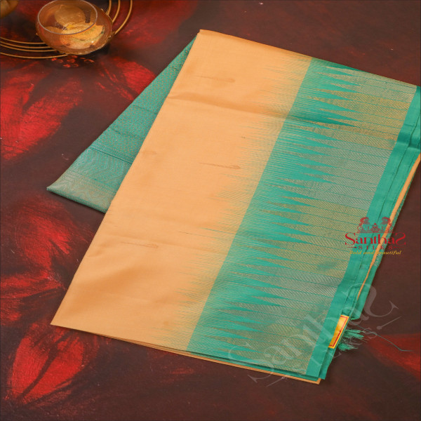 SANDAL COLOUR BODY WITH GOLDEN ZARI PAITHANI BUTTA WITH CONTRAST BLOUSE & BORDER