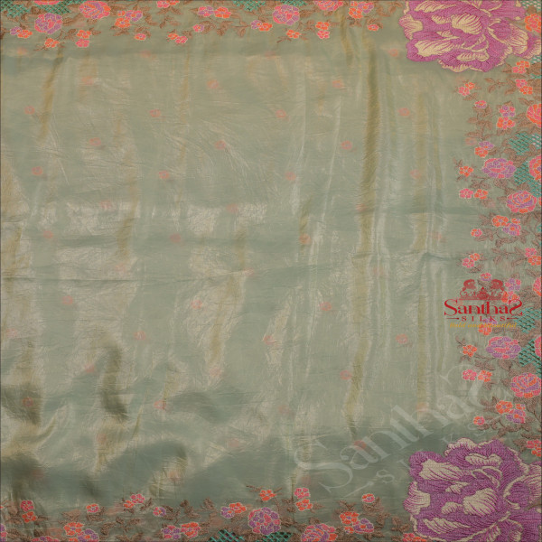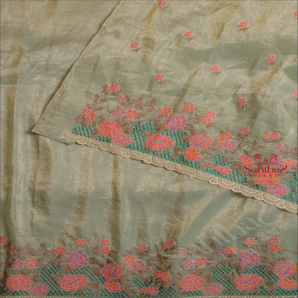 MINT COLOUR CRUSH TISSUE SAREE WITH CUTWORK FLORAL BORDER WITH SELF BLOUSE