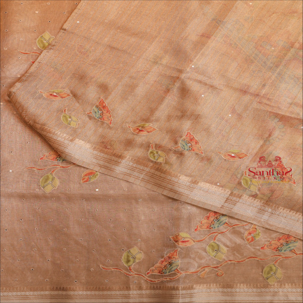 KOTA TISSUE SAREE WITH CRANE & FLORAL APPLICK WORK IN METALIC COPPER COLOUR
