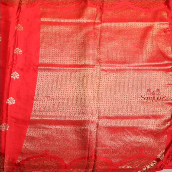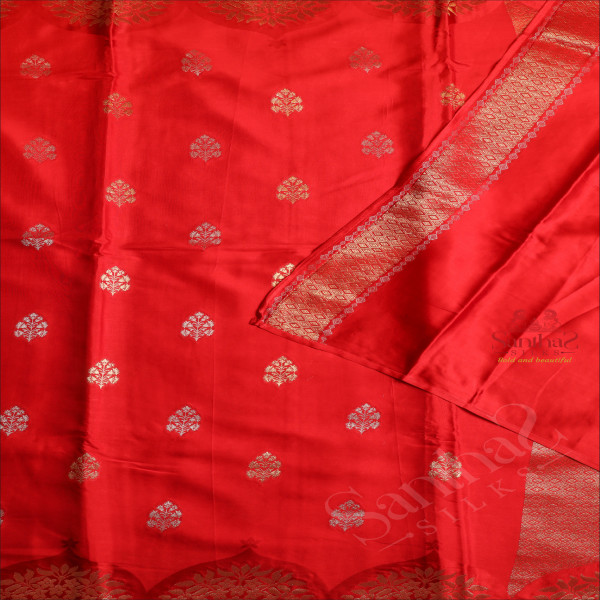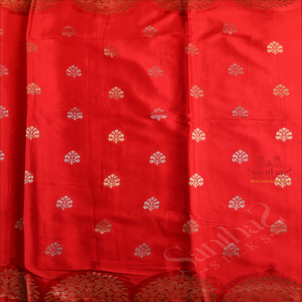 SATIN BANARAS SAREE IN CHERRY RED COLOUR