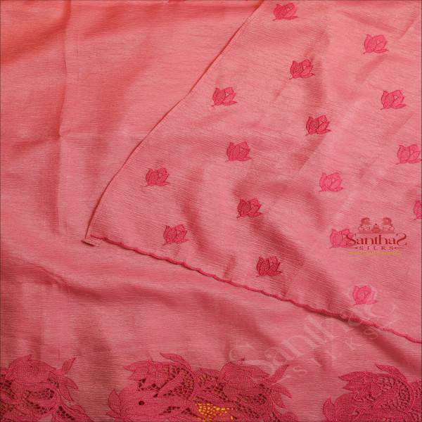CRUSH MATERIAL SAREE WITH CUT WORK EMBORIDERY IN PASTEL BERRY COLOUR