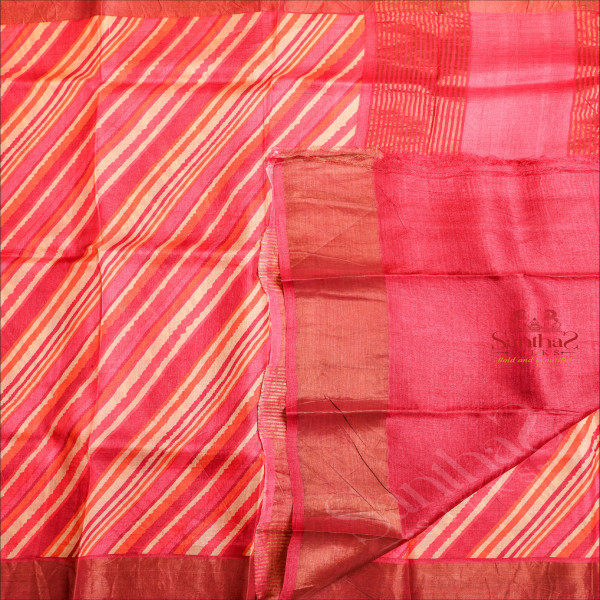 TUSSAR SAREE IN PINK WITH CREAM COLOUR LINES