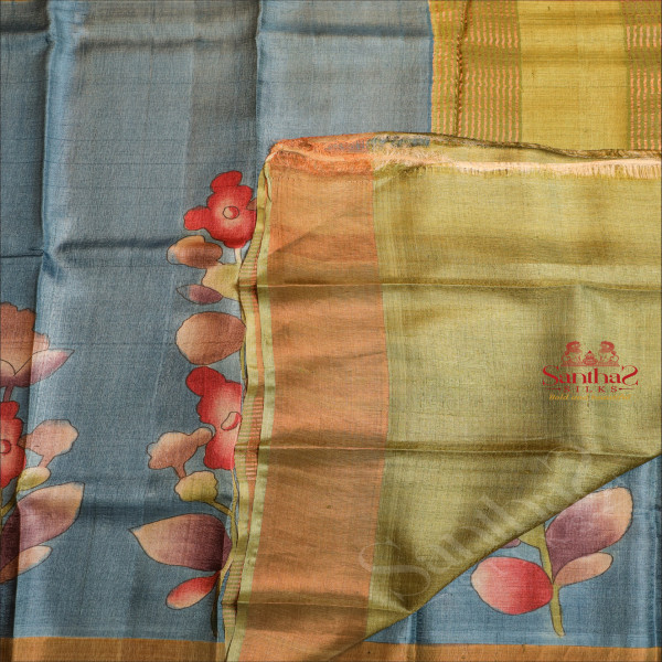 TUSSAR SAREE IN TEAL BLUE COLOUR