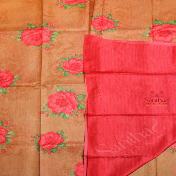 PRINTED SILK SAREE IN BEIGE COLOUR