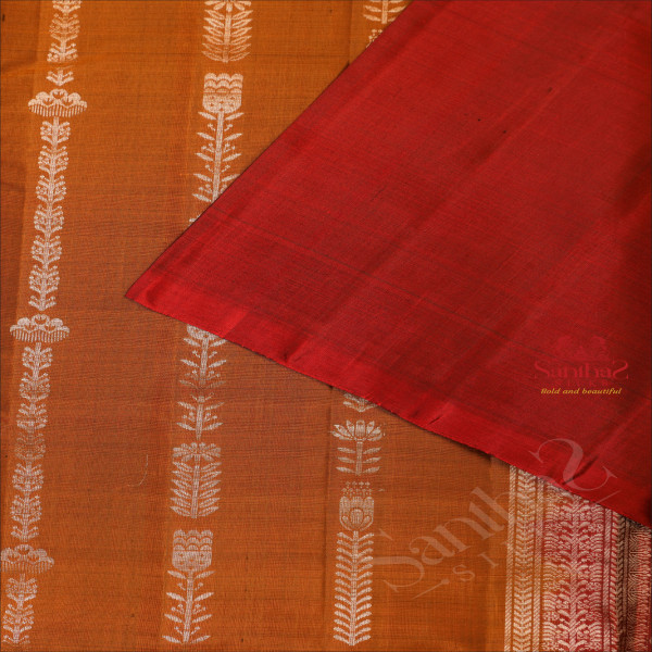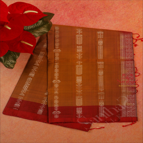 MAANTHALIR PACHAI COLOUR BODY WITH SILVER ZARI FLORAL BUTTA WITH CONTRAST BLOUSE & BORDER