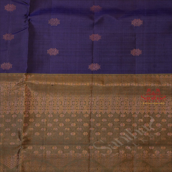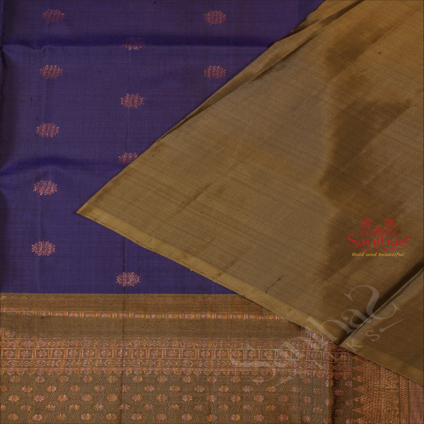 DARK BLUE COLOUR BODY WITH COPPER ZARI KOLAM BUTTA WITH CONTRAST BLOUSE & BORDER
