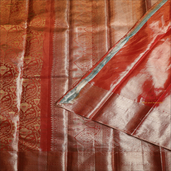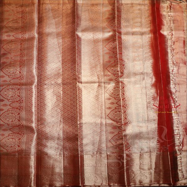 LIGHT RED COLOUR BODY WITH JACQUARD FLORAL EMBOSED WITH CONTRAST BLOUSE & BORDER