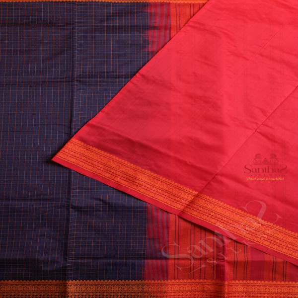 BLUE COLOUR CHECKED BODY WITH THREAD BUTTA WITH CONTRAST BLOUSE & BORDER