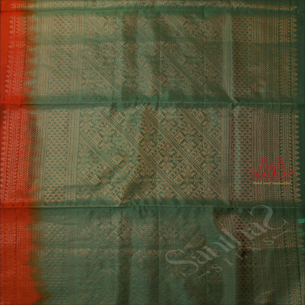 DARK HONEY COLOUR BODY WITH GOLDEN ZARI FLORAL EMBOSED WITH CONTRAST BLOUSE & BORDER