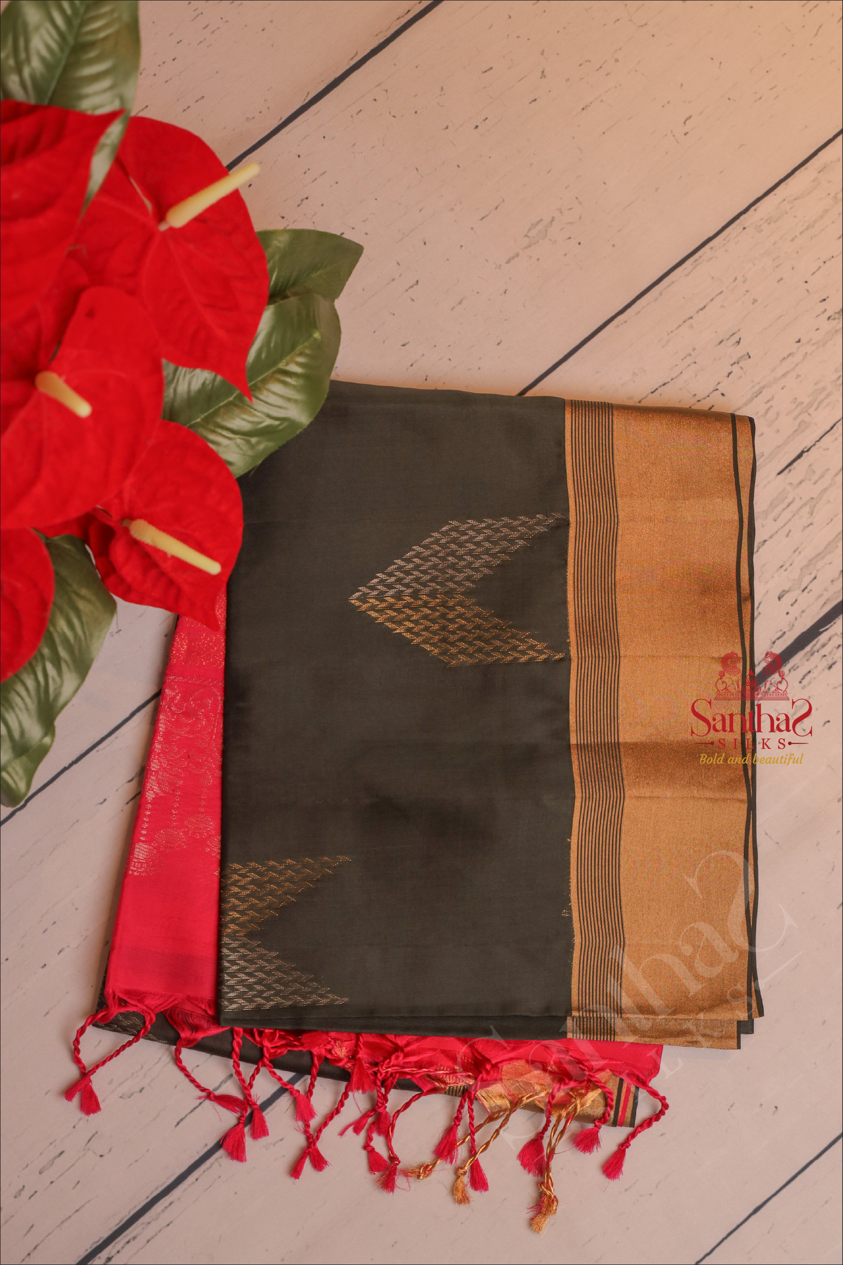 BLACK COLOUR BODY WITH GOLDEN ZARI BUTTA WITH CONTRAST BLOUSE & BORDER