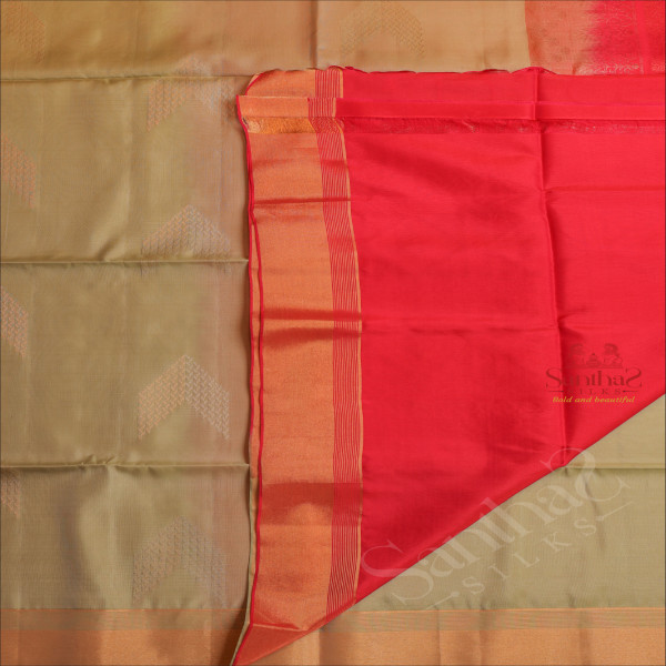 PISTHA GREEN COLOUR BODY WITH COPPER ZARI BUTTA WITH CONTRAST BLOUSE & BORDER