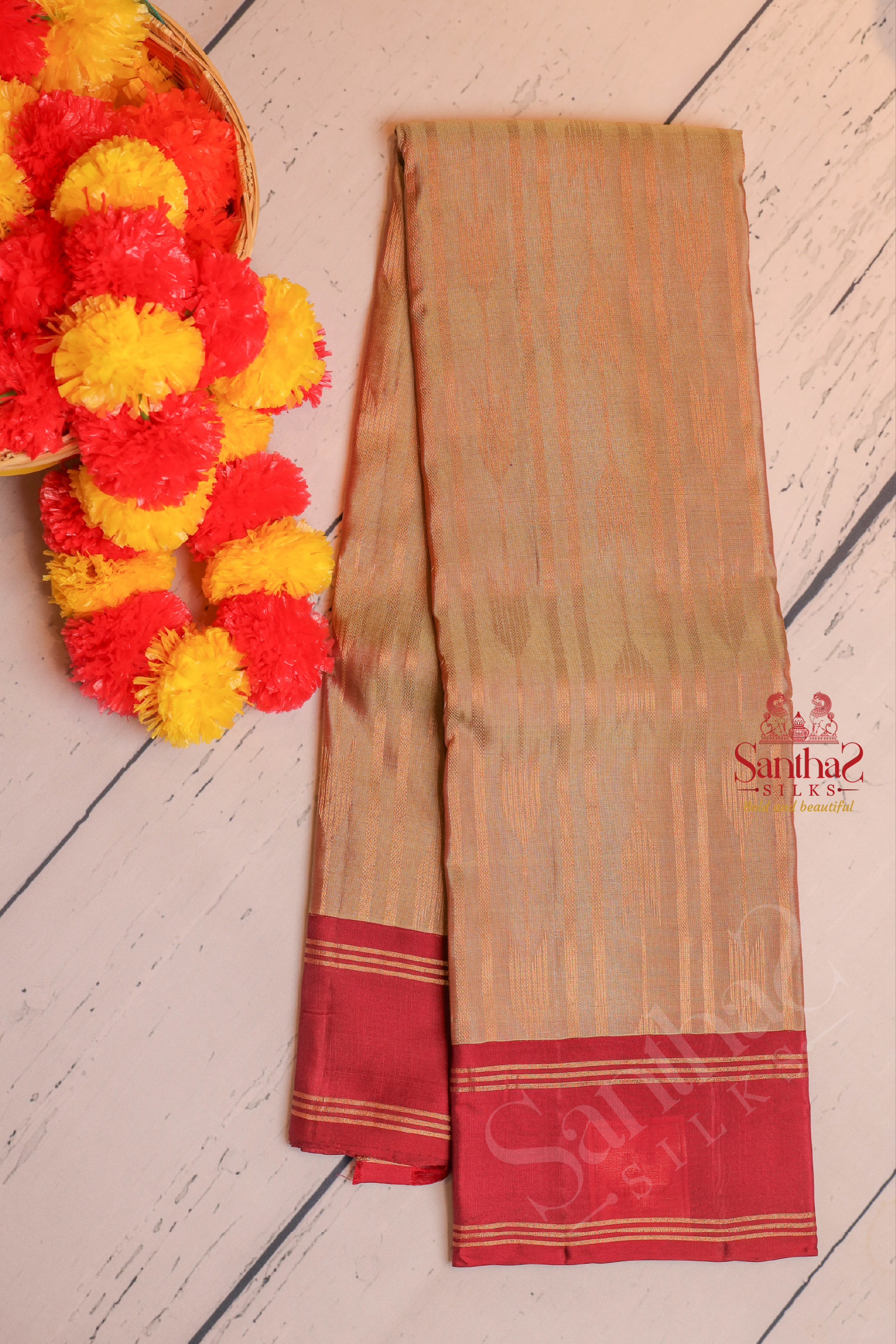 BEAVER BROWN COLOUR BODY WITH GOLDEN ZARI STRIPS WITH CONTRAST BLOUSE & BORDER