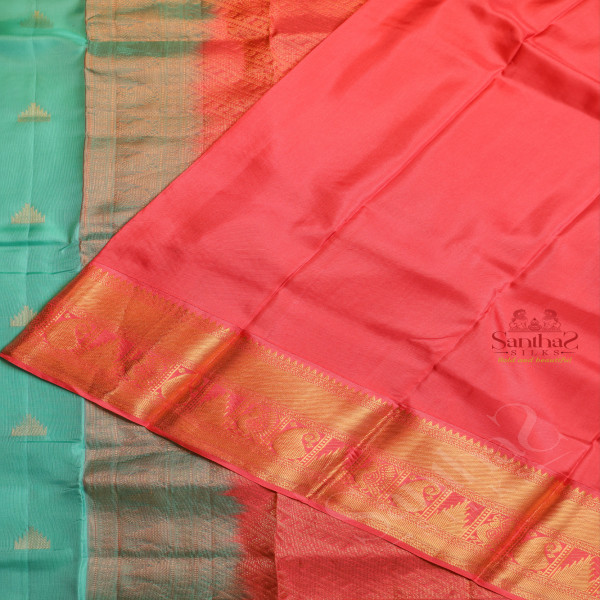 TURQUOISE BLUE COLOUR BODY WITH FGOLDEN ZARI BUTTA WITH CONTRAST BLOUSE & BORDER