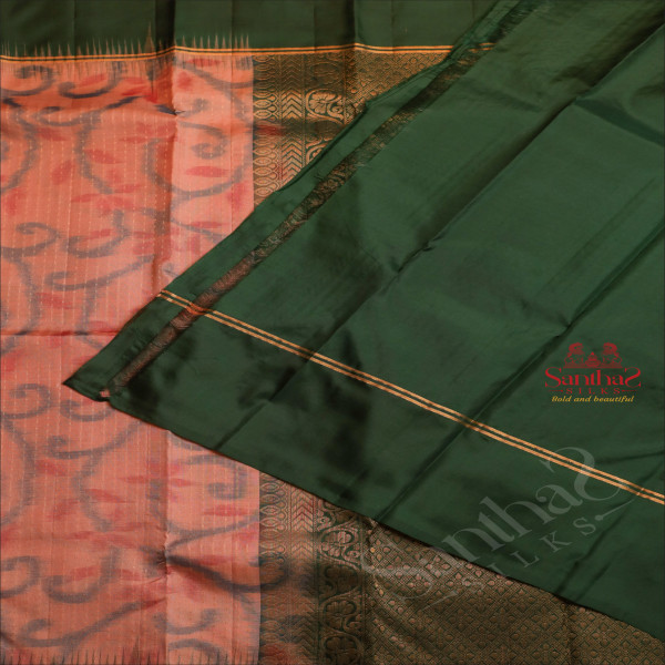 PASTEL PEACH COLOUR POCHAMPALLY BODY WITH CONTRAST BLOUSE & BORDER