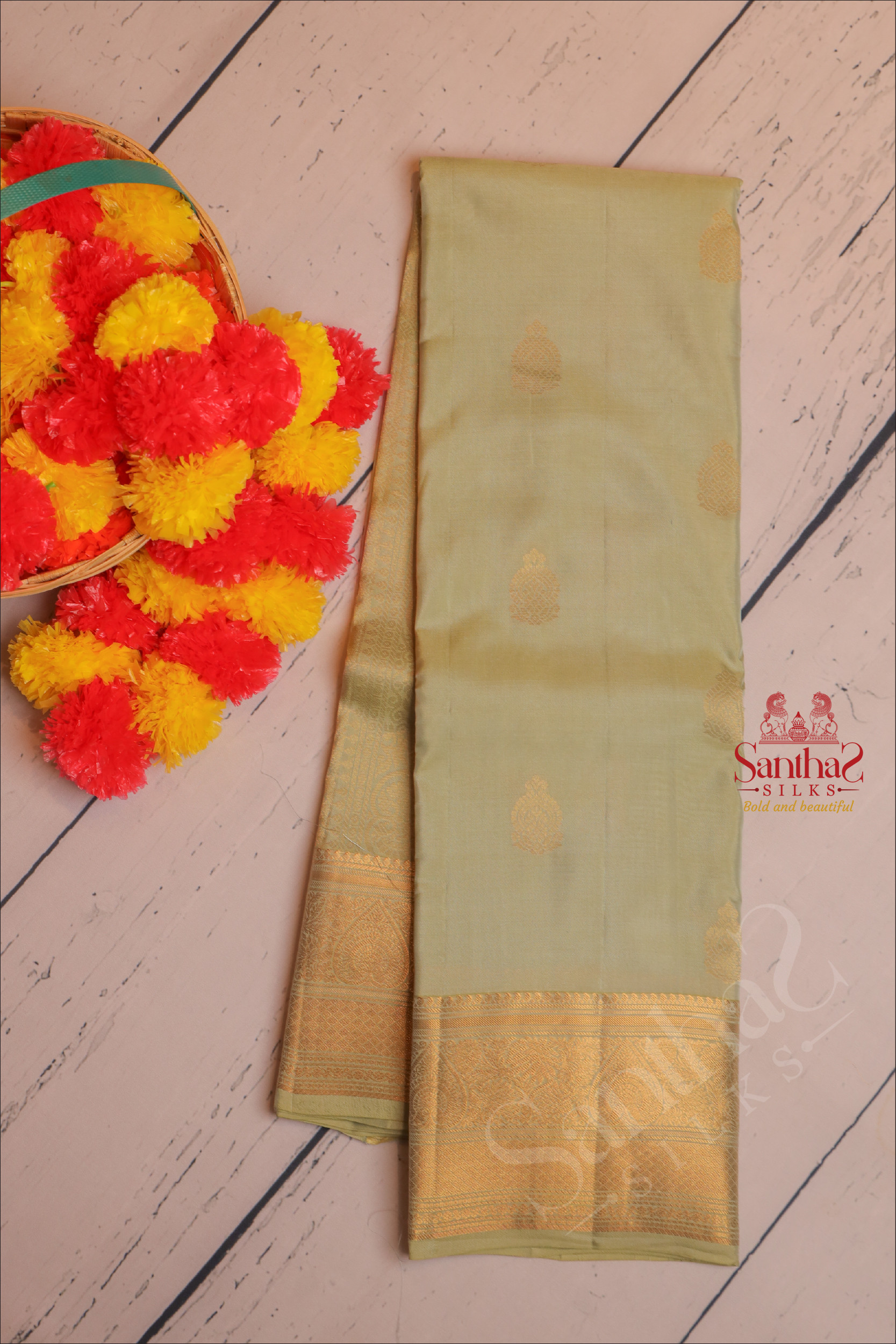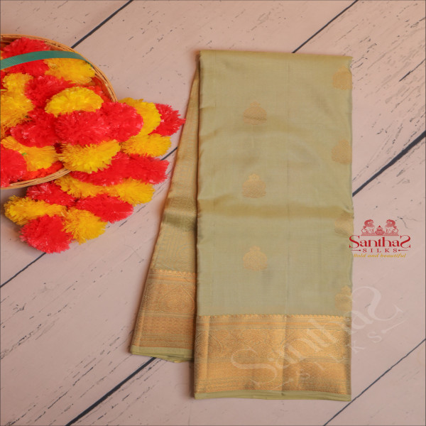 DARK SEA GREEN COLOUR BODY WITH GOLDEN ZARI BUTTA WITH SELF BLOUSE