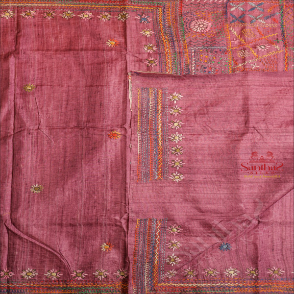 SEMI TUSSAR SAREE WITH LAMBANI WORK IN PURPLE COLOUR