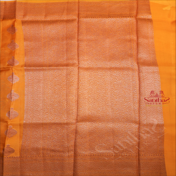 MUSTARD YELLOW COLOUR KORA ORGANZA SAREE WITH ZARI BUTTA AND SELF BLOUSE