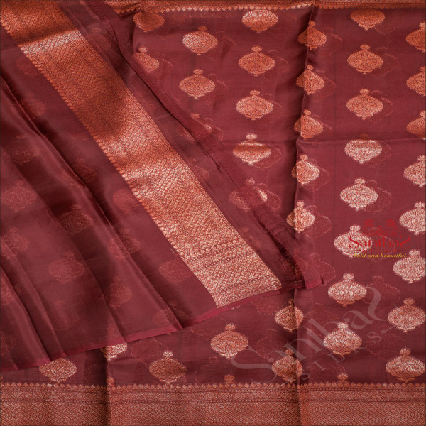 DARK MAGENTA COLOUR KORA ORGANZA SAREE WITH COPPER ZARI BUTTA WITH SELF BLOUSE