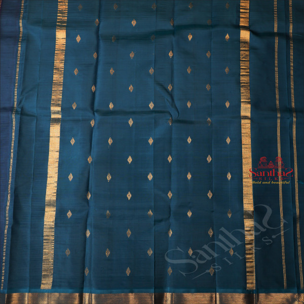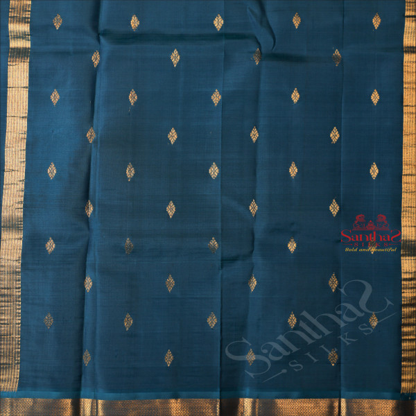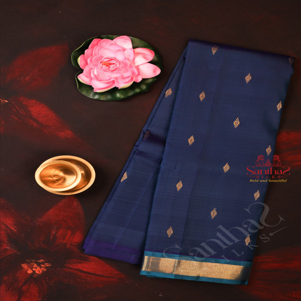 ONE SIDE BORDER ROYAL BLUE COLOUR BODY WITH GOLDEN ZARI BUTTA & WITHOUT BLOUSE