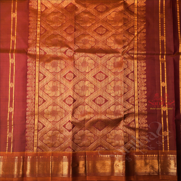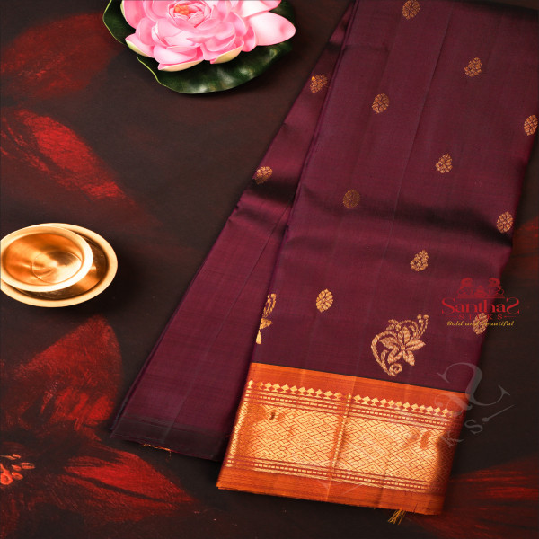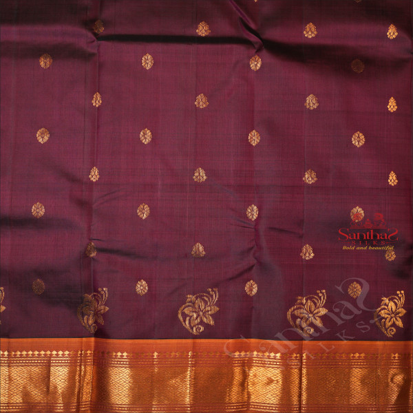 ONE SIDE BORDER DARK PURPLE COLOUR BODY WITH GOLDEN ZARI BUTTA & WITHOUT BLOUSE