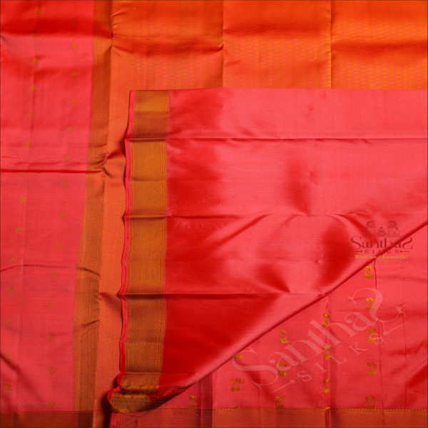 DARK PEACH COLOUR BODY WITH MUSTARD COLOUR THREAD BUTTAS AND SELF COLOUR PALLU & BLOUSE