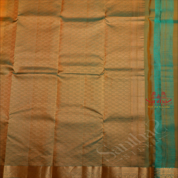 MUSTARD YELLOW COLOUR BODY WITH GOLDEN ZARI BUTTA WITH CONTRAST BLOUSE & BORDER