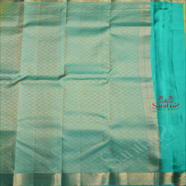 MINT GREEN COLOUR BODY WITH GOLDEN ZARI BUTTAS AND CONTRAST PALLU & BLOUSE