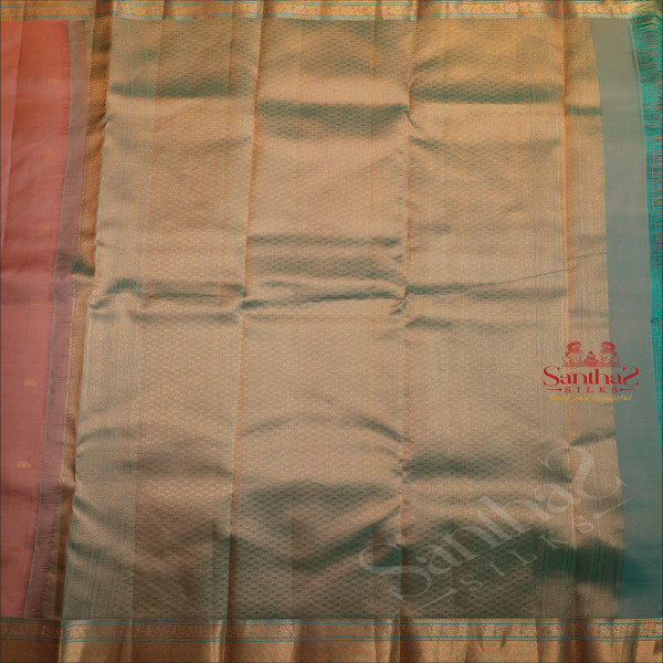 PASTEL FLESH PINK COLOUR BODY WITH GOLDEN ZARI BUTTAS AND CONTRAST PALLU & BLOUSE