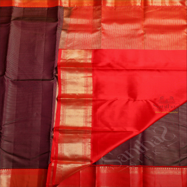 DARK PURPLE COLOUR BODY WITH STRIPS WITH CONTRAST BLOUSE & BORDER