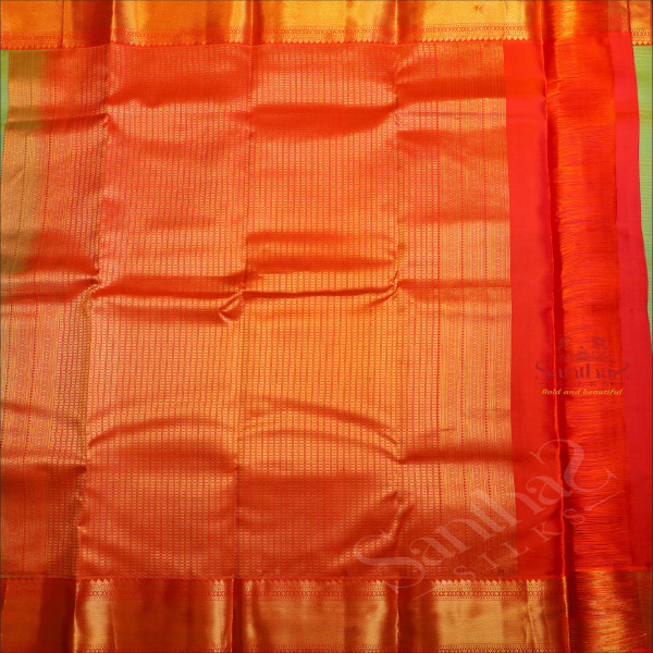 GREEN COLOUR BODY WITH STRIPS WITH CONTRAST BLOUSE & BORDER
