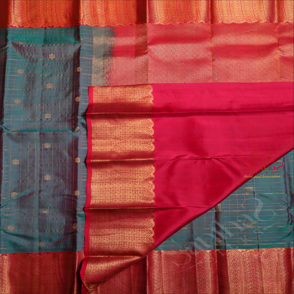 OCEAN BLUE COLOUR CHECKED BODY WITH ZARI BUTTA WITH CONTRAST BLOUSE & BORDER