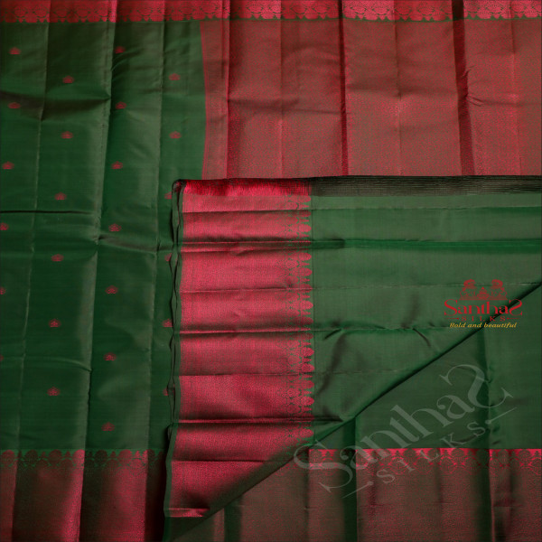 DARK GREEN COLOUR BODY WITH RANI PINK COLOUR ZARI BUTTAS AND SELF COLOUR PALLU & BLOUSE