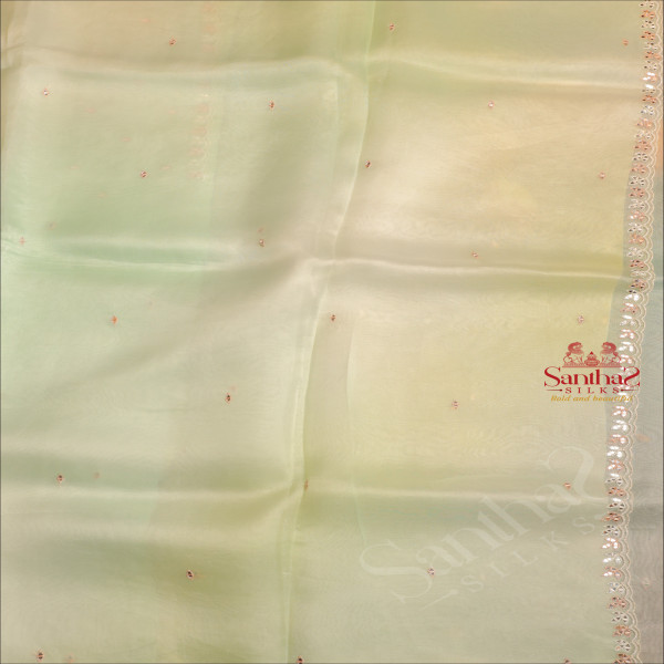 PISTHA COLOUR ORGANZA TISSUE SAREE WITH MIRROR WORK SCALLOP BORDER WITH SELF BLOUSE