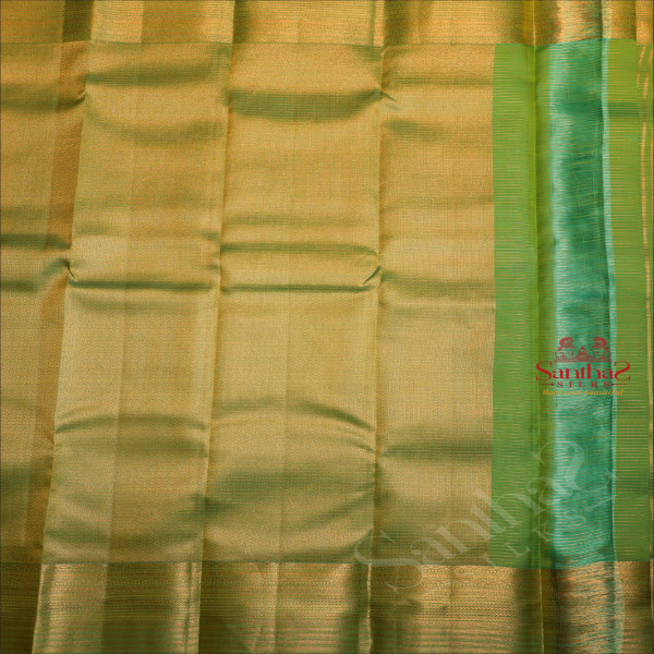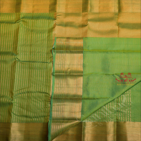 SPRING GREEN COLOUR BODY WITH GOLDEN ZARI SMALL CHECKS AND SELF COLOUR PALLU & BLOUSE