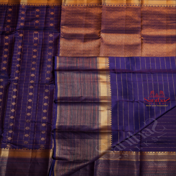 VIOLET COLOUR BODY WITH GOLDEN ZARI CHECKED BOXES & CHAKRA BUTTAS AND SELF COLOUR PALLU & BLOUSE