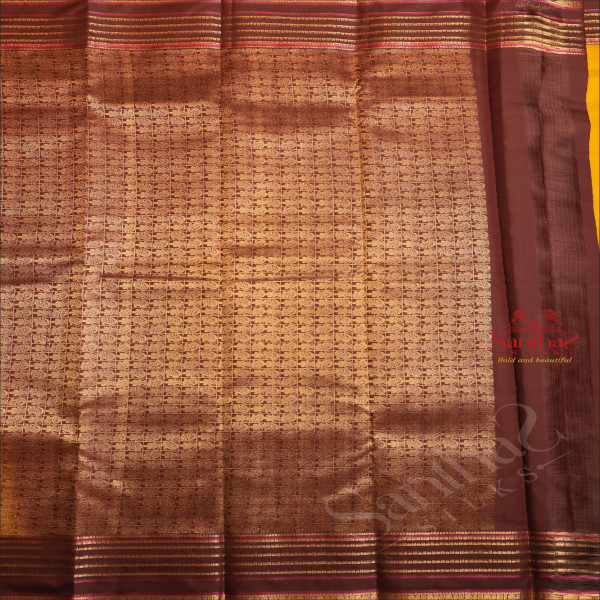 BRIGHT YELLOW COLOUR BODY WITH GOLDEN ZARI BUTTAS AND CONTRAST PALLU & BLOUSE