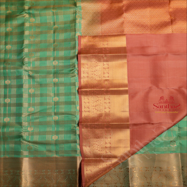 THYME GREEN COLOUR CHECKED BODY WITH ZARI BUTTA WITH CONTRAST BLOUSE & BORDER