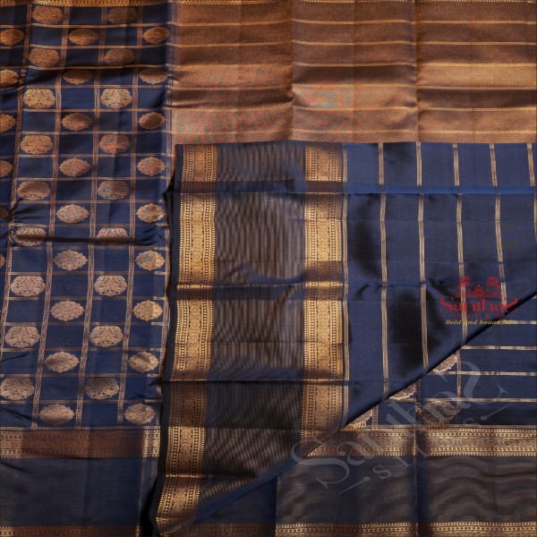 PRUSSIAN BLUE COLOUR BODY WITH GOLDEN ZARI CHECKED BOXES & BUTTAS AND SELF COLOUR PALLU & BLOUSE