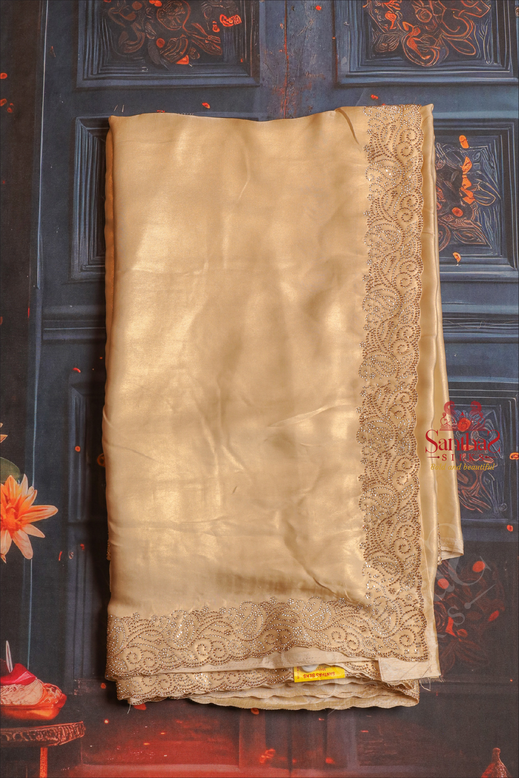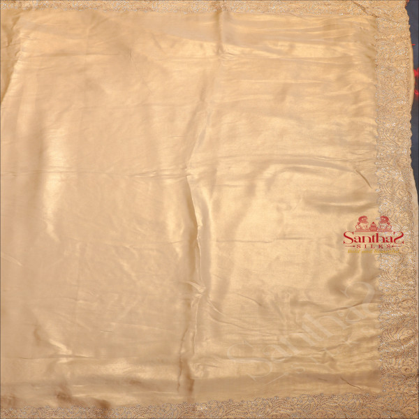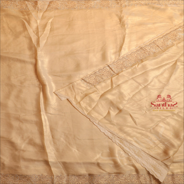 SANDAL COLOUR WORK SAREE WITH STONE PATTERN BORDER WITH SELF BLOUSE