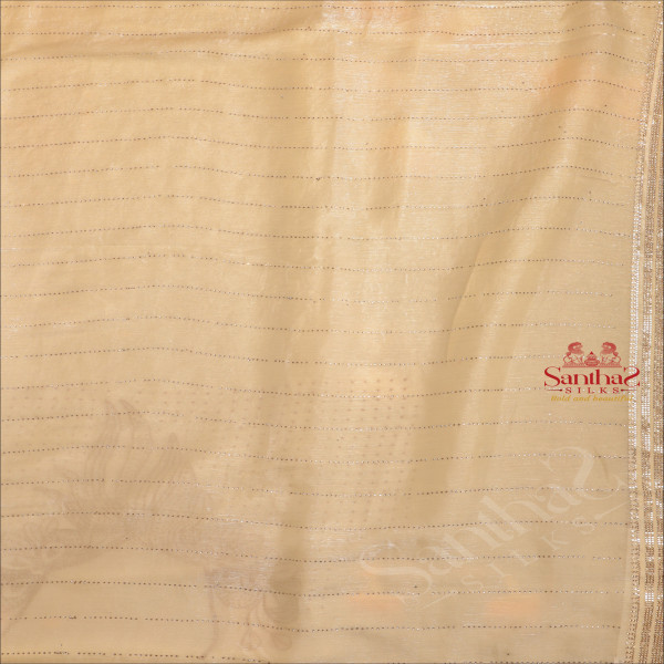 SANDAL COLOUR WORK SAREE WITH FANCY STONE BORDER AND SELF BLOUSE