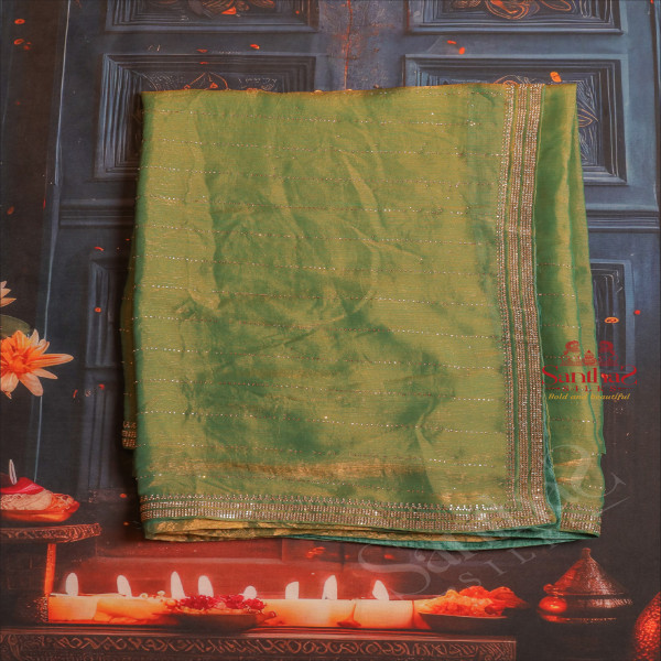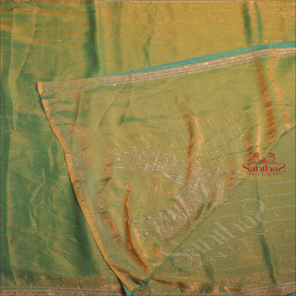 AMAZON GREEN COLOUR WORK SAREE WITH STONE PATTERN AND SELF BLOUSE