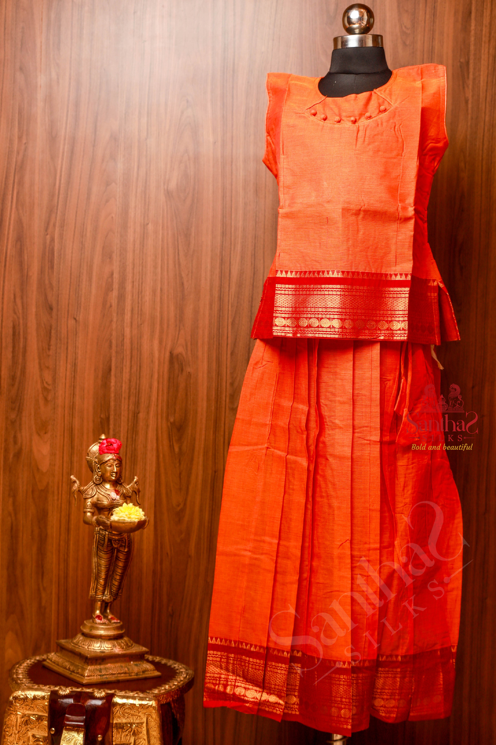 ORANGE COTTON PAVADAI SET