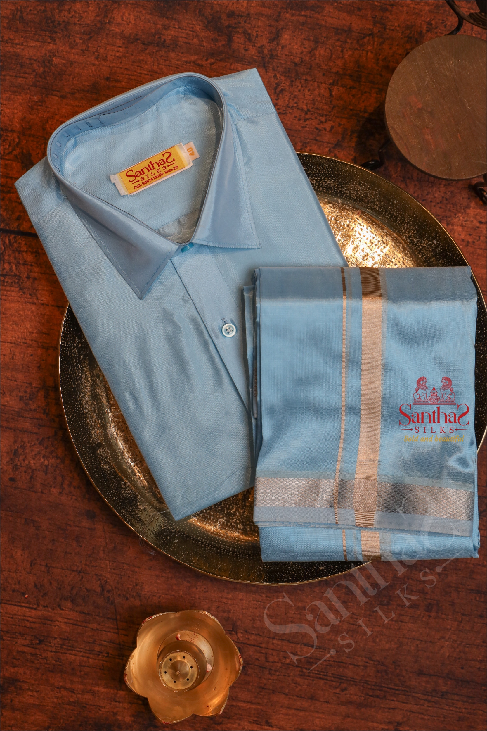 BABY BLUE COLOUR SHIRT WITH 4 YARD DHOTI