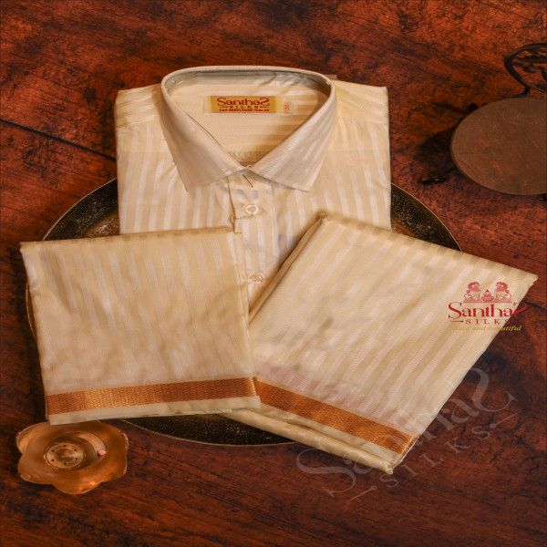 SANDAL COLOUR SHIRT + DHOTI + TOWEL & HANDKERCHIEF WITH PERFUME + BELT